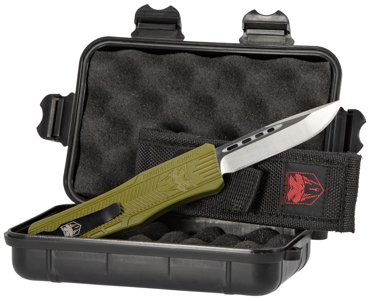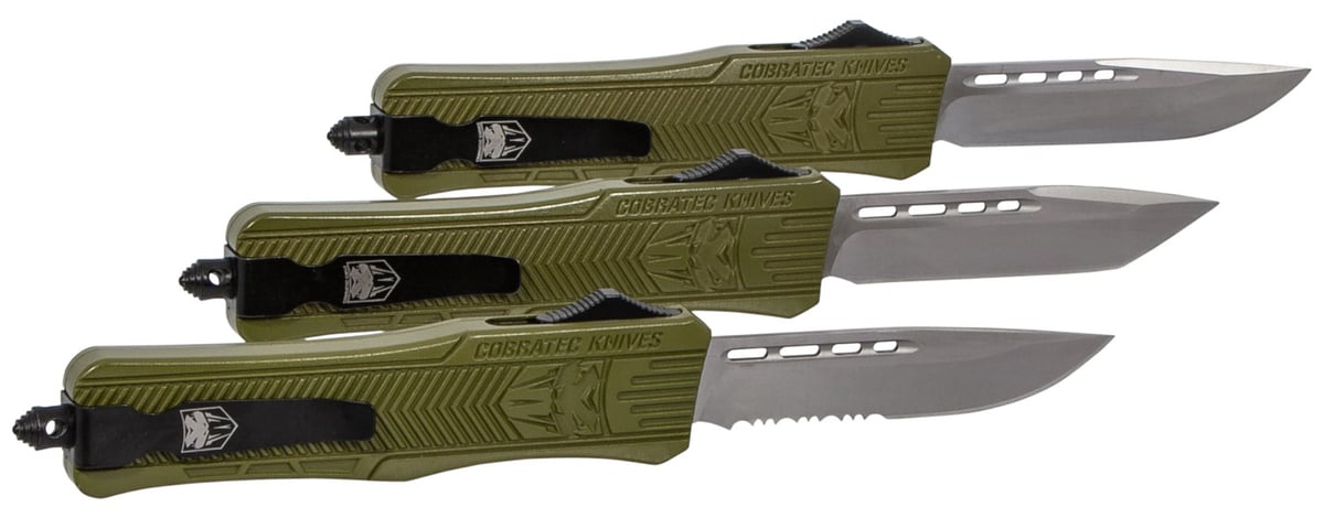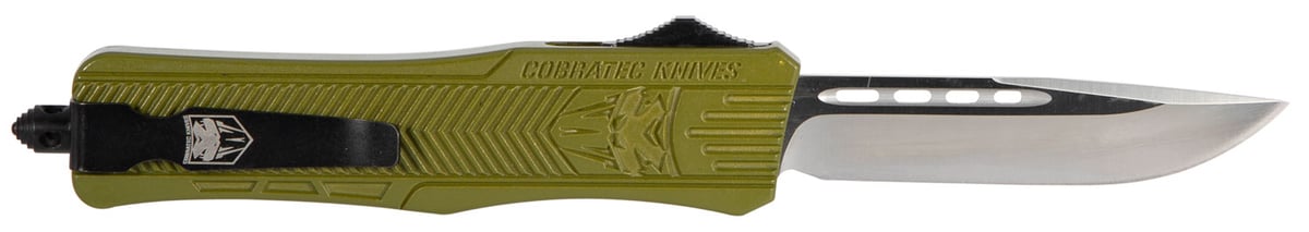 CobraTec Knives MODCTK1MDNS CTK-1 Medium 3" OTF Drop Point Plain D2 Steel Blade/OD Green Aluminum Handle Features Glass Breaker Includes Pocket Clip