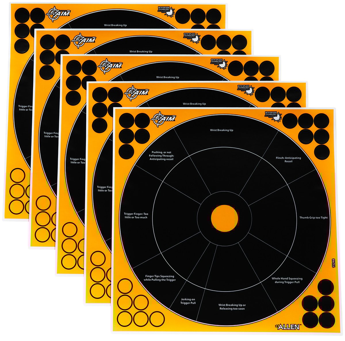 EZ-Aim 15248 Splash Reactive Self-Adhesive Paper Black/Orange 12" Bullseye 5 Pack