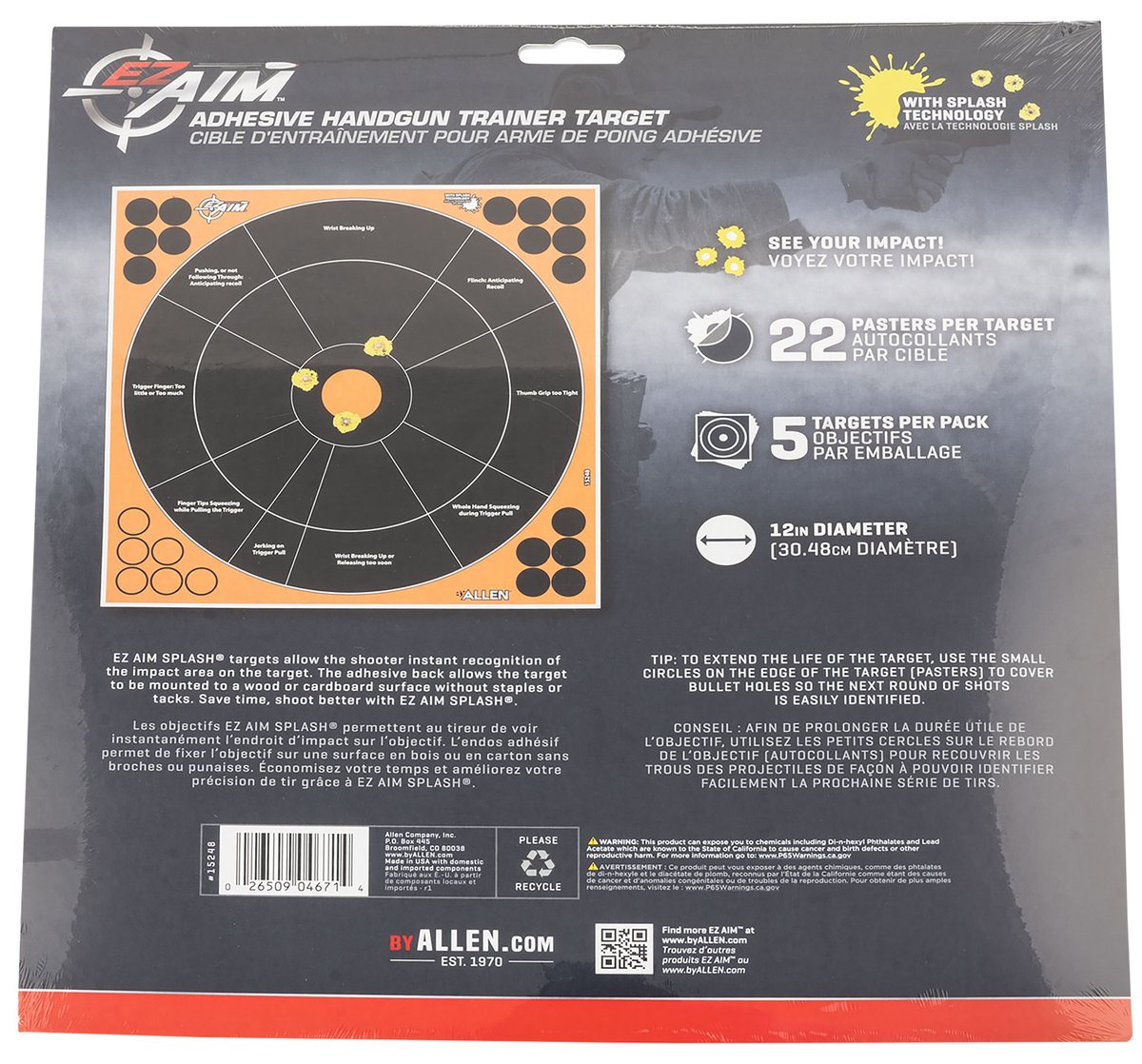 With shooting being a pastime or part of preparation for a trip to the field, EZ-Aim is serious about your success and continued improvement across shooting disciplines. Targets designed to help improve your accuracy and confidence for when you need it most. Designed to maximize accuracy, shot impact, flaking paper and splash technology show yellow impact holes.