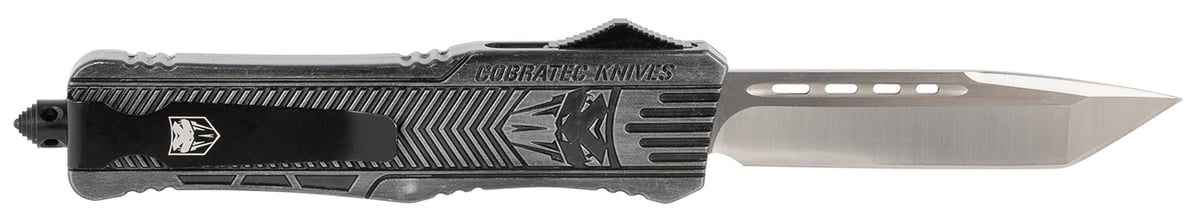 CobraTec Knives LSWCTK1LTNS CTK-1 Large 3.75" OTF Tanto Plain D2 Steel Blade/Stonewashed Aluminum Handle Features Glass Breaker Includes Pocket Clip
