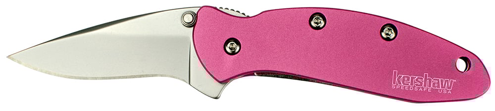 The Pink Chive features a 1.9" high-carbon steel blade, design to cut any obstacle placed in front of it. Designed for speedy use, the Chive is equipped with a SpeedSafe opening mechanism. For insured safety Kershaw used their two-stage locking system, allowing the frame lock to keep the blade open while in use and the tip lock to keep the blade closed while in transport. Made in the USA.
