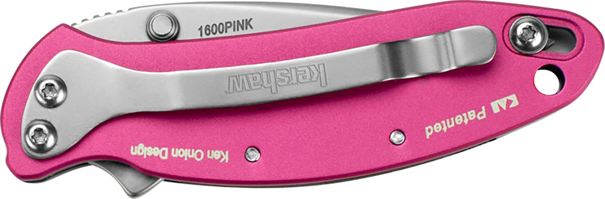Kershaw 1600PINK Chive 1.90" Folding Drop Point Plain Bead Blasted 420HC SS Blade Pink Anodized Aluminum Handle Includes Pocket Clip