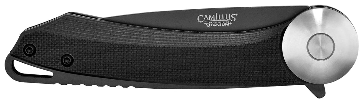 Camillus 19640 Cirque 2.75" Folding Drop Point Plain Black AUS-8 Carbonitride Titanium Blade, Black G10 Handle