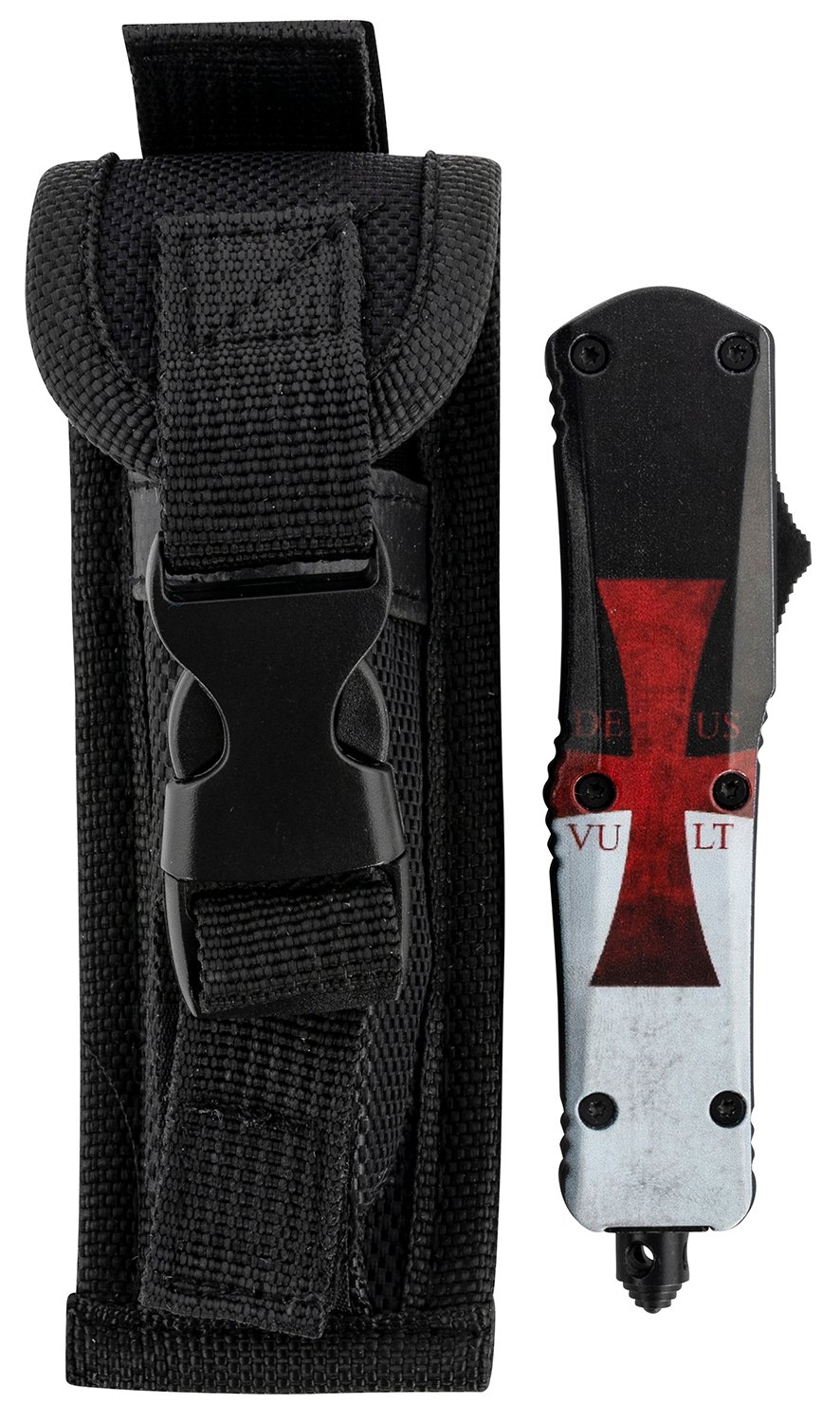 Templar Knife STK332 Gen II Templar Flag Small 2.69" OTF Drop Point Plain Powder Coated 440C SS Blade, 4.31" Templar Flag Aluminum Handle Glass Breaker