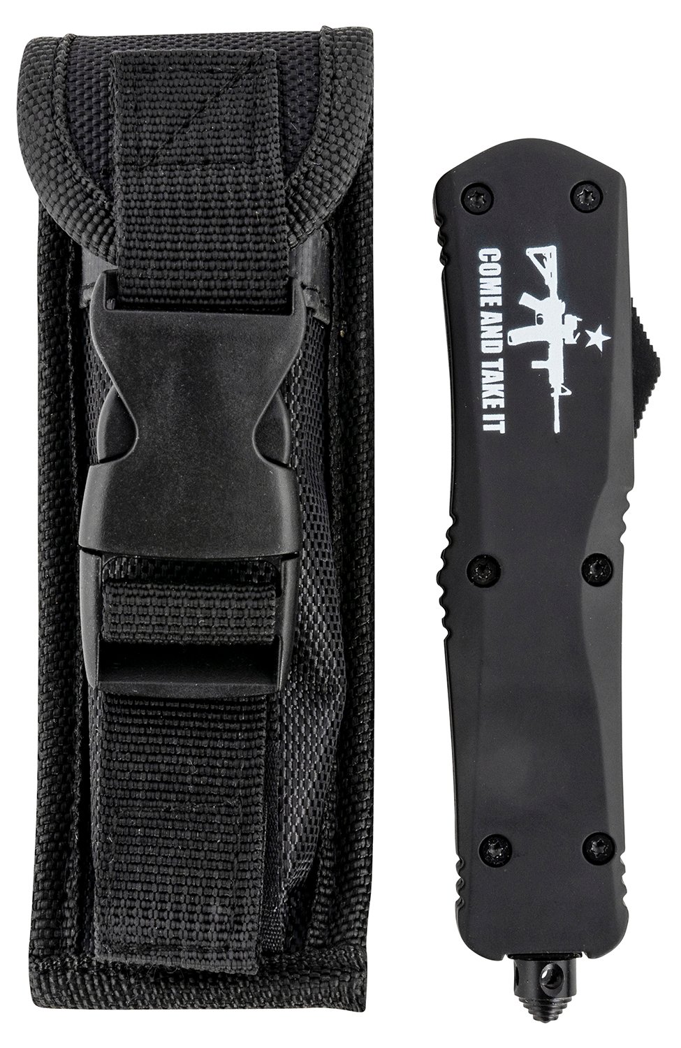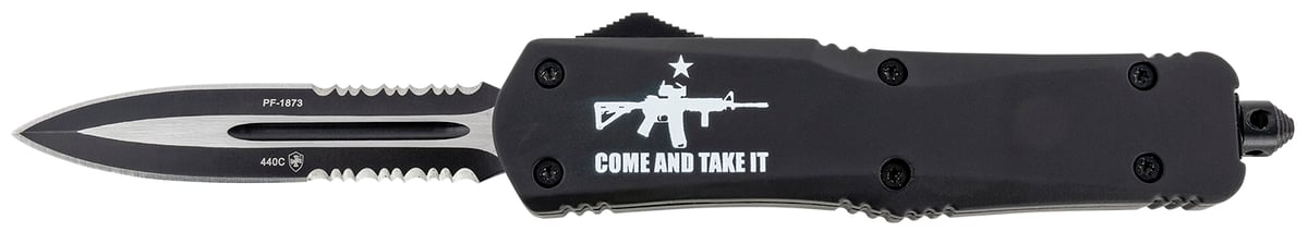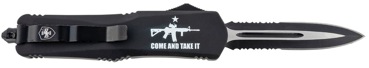 Templar Knife LAR15431 Gen II Come And Take It Large 3.50" OTF Dagger Part Serrated Black Oxide Stonewashed 440C SS Blade, 5.25" Black w/ "Come And Take It" AR-15 Gun Aluminum Handle, Glass Breaker