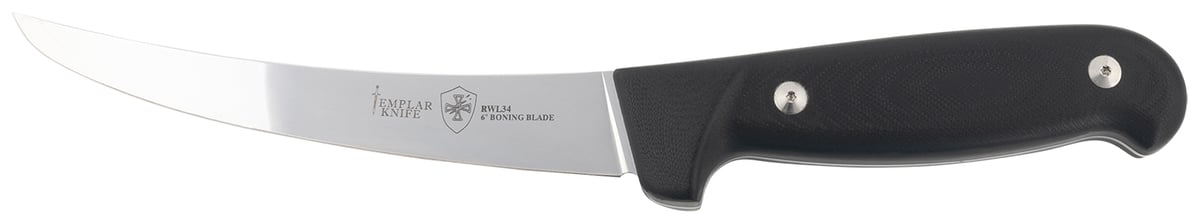 Templar Knife K6BBK362 Boning 6" Fixed Plain Damasteel Blade, 5" Black G10 Handle