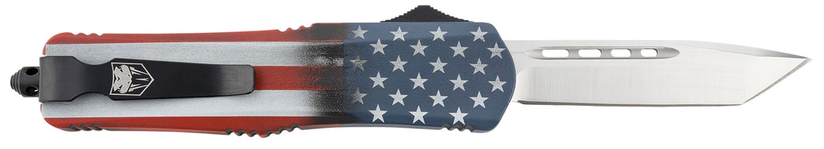 CobraTec Knives MCUSAFS3TNS FS-3 American Flag Medium 3" OTF Tanto Plain Satin D2 Steel Blade, 5" US Flag Aluminum Cerakoted Handle