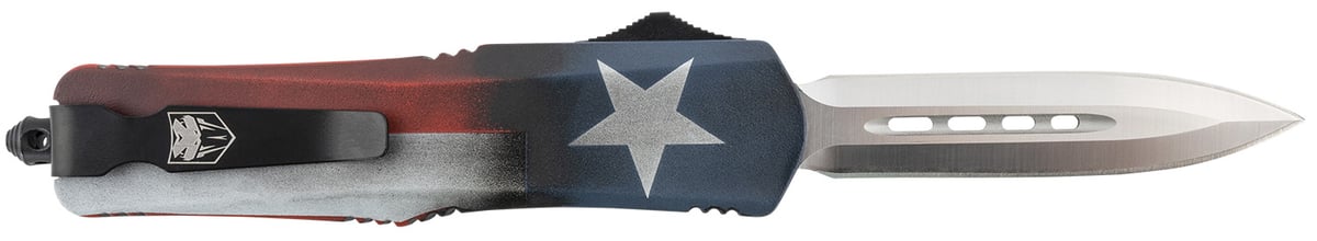 CobraTec Knives MCTXFS3DAGNS FS-3 Texas Flag Medium 3" OTF Dagger Plain Satin D2 Steel Blade, 5" Texas Flag Aluminum Cerakoted Handle