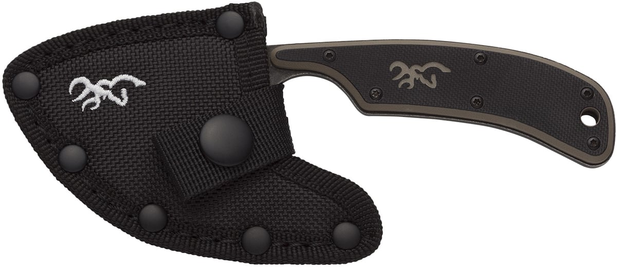 Browning 3220323 Cutoff 2.50" Fixed Skinner Plain Black Black Oxide Stonewashed 9Cr14MoV SS Blade, Black/Tan G10 Handle