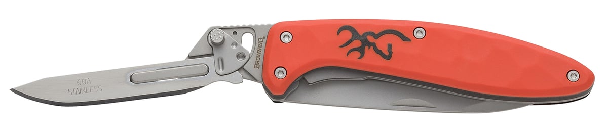 Browning 3220462 Primal Scalpel 2 2.75" Folding Drop Point/Scalpel Plain Blaze Orange 8Cr13MoV SS Blade, Blaze Orange Polymer w/Rubber Overmold Handle