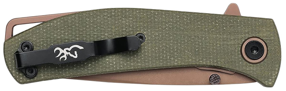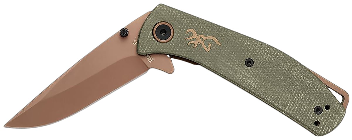 Browning 3220516 Trailside EDC Small 3" Folding Modified Drop Point Plain Titanium Finish D2 Steel Blade, Green Micarta Handle
